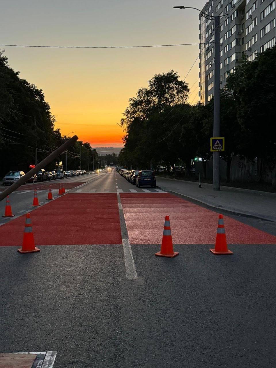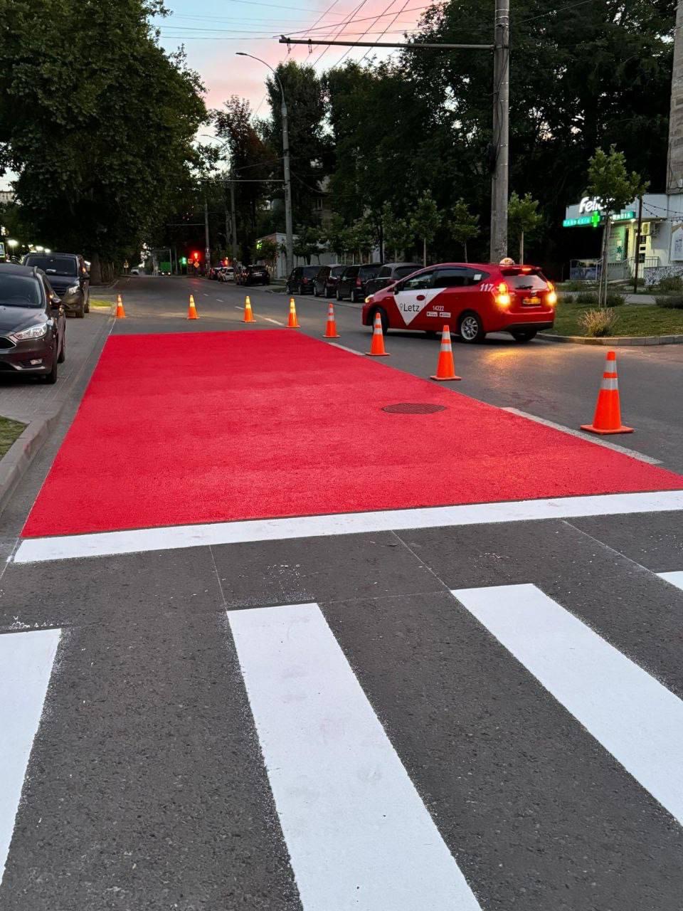 (FOTO) Chișinăul implementează un nou tip de marcaj rutier – „covorul roșu”. Ce presupune acesta