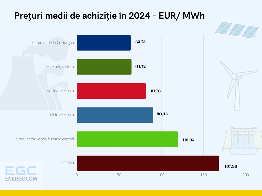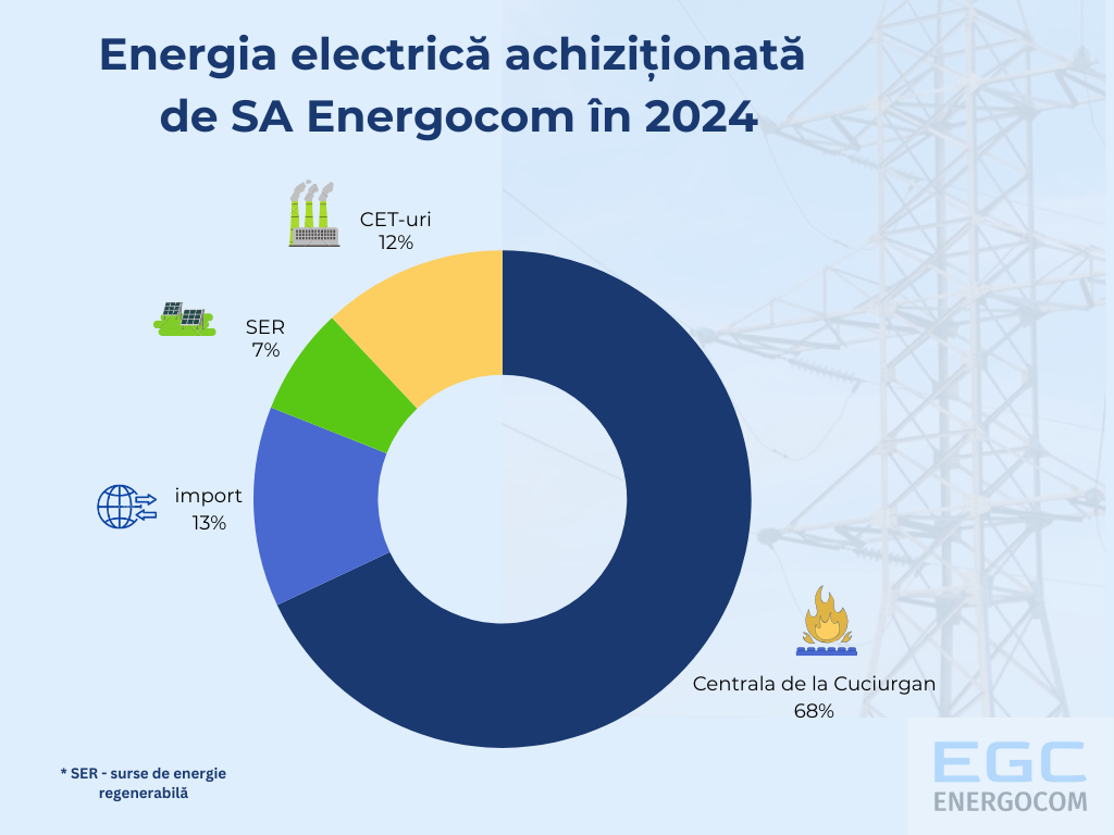 Pe durata anului 2024, SA Energocom a cumpărat în total 4,5 milioane MWh de la 8 producători mari sau grupuri de producători din Republica Moldova, România, Ucraina, plus de la alți circa 200 de producători mici de energie regenerabilă. Prețul mediu ponderat al unui MWh din toate sursele a constituit aproximativ 90 euro.