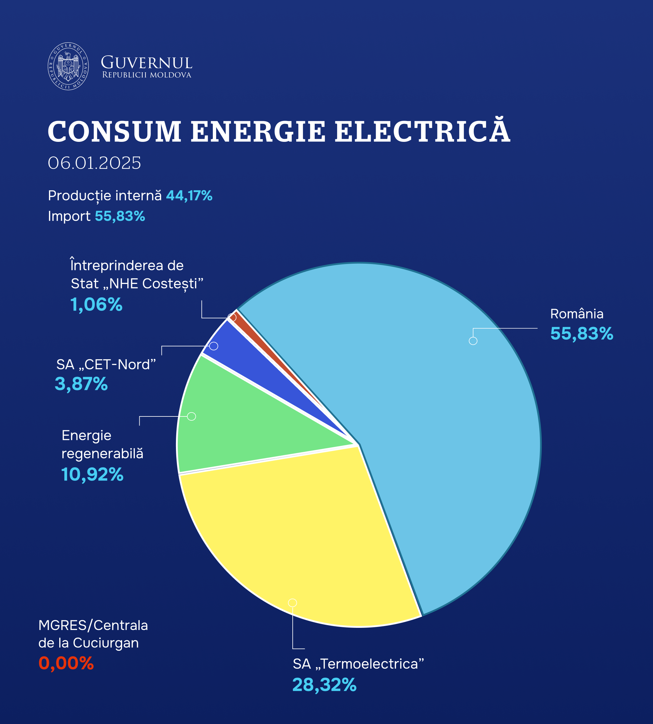 Soldul de import al energiei electrice (MD/ RO) – 55,83%.