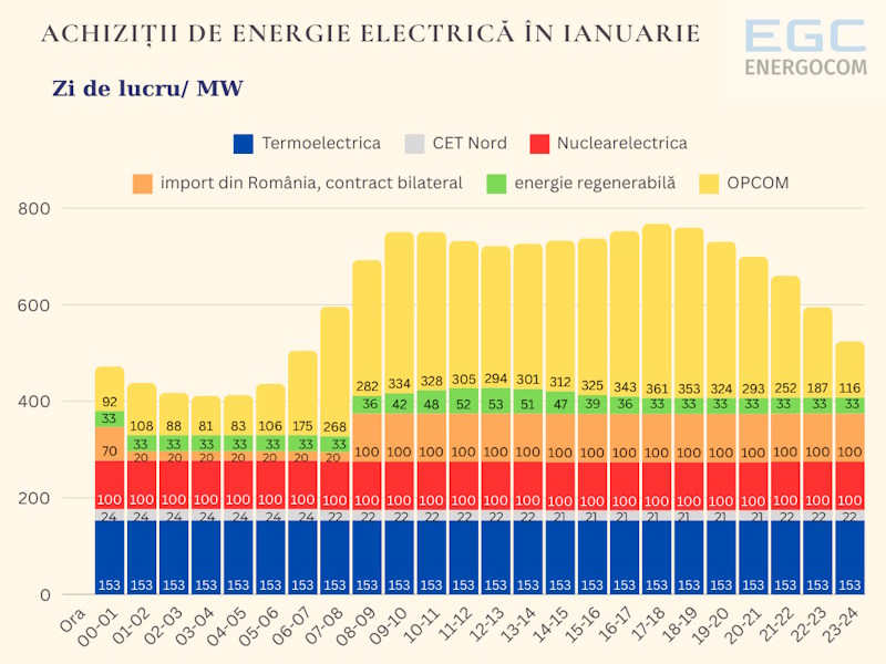 Restul 62% vor reprezenta importuri din România, dintre care cea mai mare parte va fi energia cumpărată pe bursa română OPCOM. De pe OPCOM urmează să fie achiziționați peste 178 mii de MWh (echivalentul a 39% din necesar), iar în baza contractelor bilaterale – alți 105 mii MWh (23%).