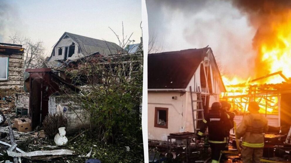 În localitatea Zazimie, serviciile de urgență au anunțat că o femeie de 83 de ani a fost salvată dintr-o locuință cuprinsă de flăcări, iar resturile rachetelor au provocat incendii suplimentare, inclusiv la un camion cu remorcă.