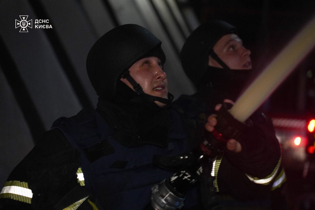 Resturile căzute de la o dronă distrusă au declanşat incendii în clădiri înalte de apartamente din cartierul istoric Podil şi din cartierul Dniprovsky de peste râul Dnipro, a declarat Timur Tkachenko, şeful administraţiei militare din Kiev, pe Telegram.