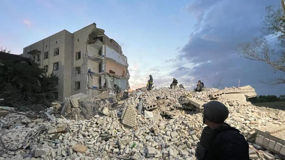 Cel puțin șase civili au fost uciși și peste 30 ar putea fi prinși sub dărâmături după ce rușii au lovit cu rachete Uragan un bloc de locuințe de cinci etaje, în zona Donețk. Clădirea s-a prăbușit.