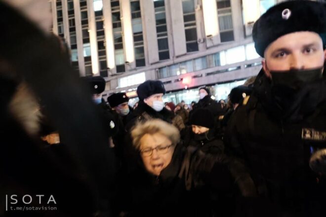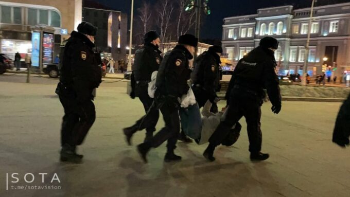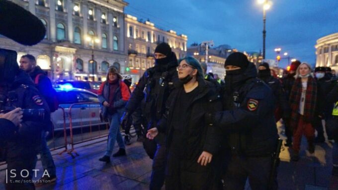 Sute de protestatari au fost arestaţi lângă Piaţa Puşkin din capitala rusă şi alţi circa 20 în al doilea oraş al Rusiei, în timp ce scandau „Nu războiului!”,