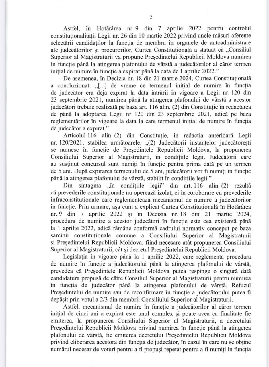 Mai mult, magistratul susține că deține probe care ar demonstra falsificarea unor informații transmise Președinției de către Centrul Național Anticorupție (CNA). Potrivit acestuia, datele în cauză ar fi permis respingerea propunerii de numire a sa în funcție până la atingerea plafonului de vârstă.