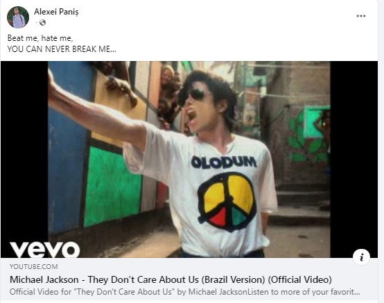 La scurt timp, Paniș a reacționat sugestiv, postând o piesă a celebrului interpret Michael Jackson.