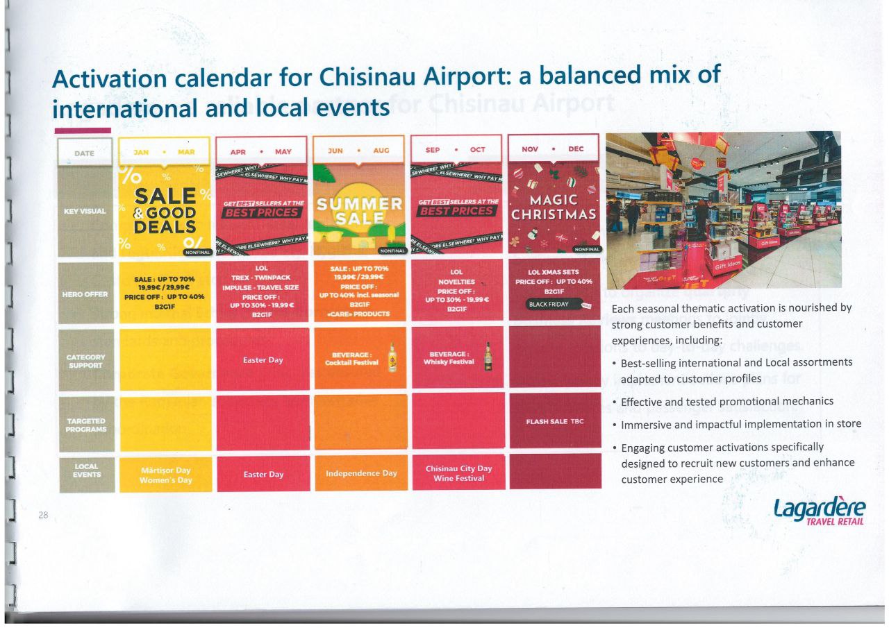Apar noi dovezi despre faptul că licitația spațiilor comerciale de la aeroport are un pronunțat iz de trucare. O broșură a companiei franceze „Lagardere”, trimisă Agenției Proprietății Publice încă în primăvara anului 2023, imediat după preluarea aeroportului din Chișinău de către stat, arată că întreg caietul de sarcini al licitației a fost întocmit în baza ofertei companiei franceze, începând de la schemele de amplasare a magazinelor, planul de marketing și alte detalii tehnice. Despre asta anunță bloggerul Eugen Luchianiuc, într-o investigație publicată pe blogul său.