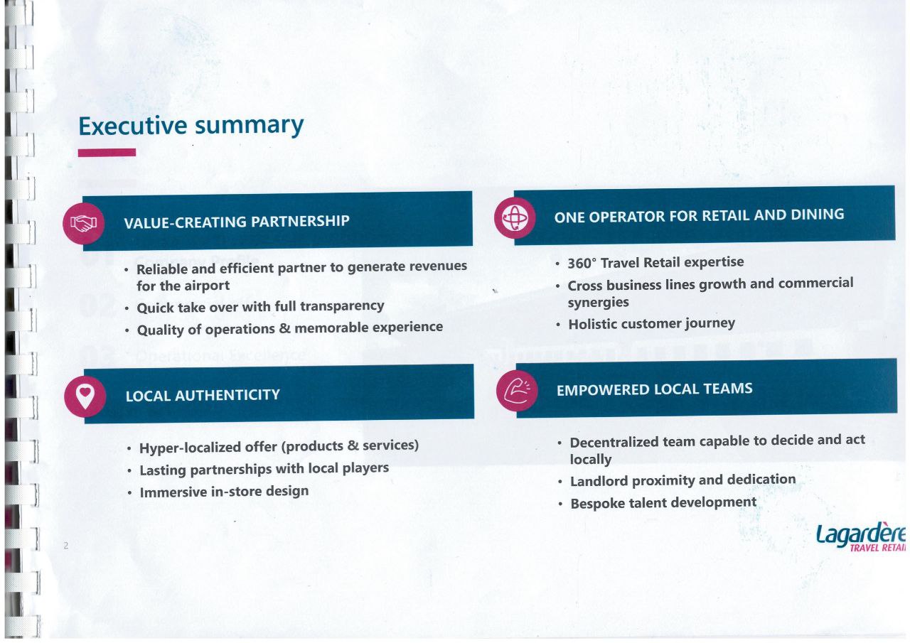 Precizăm că, deși oficial, anunțul despre intenția de a da în arendă spațiile comerciale de al aeroport a fost făcut abia la finele anului trecut, în spațiul public au apărut niște documente care confirmau încă atunci că discuțiile între compania „Lagardere” și reprezentanții Guvernului se duceau de multă vreme, iar licitația era concepută ca o chestiune formală, deoarece câștigătorul se știa dinainte. Faptul s-a confirmat atunci când s-a văzut clar că prevederile din caietul de sarcini au fost formulate în așa fel încât nicio companie din domeniu, cu excepția „Lagardere”, să nu poată întruni condițiile impuse.