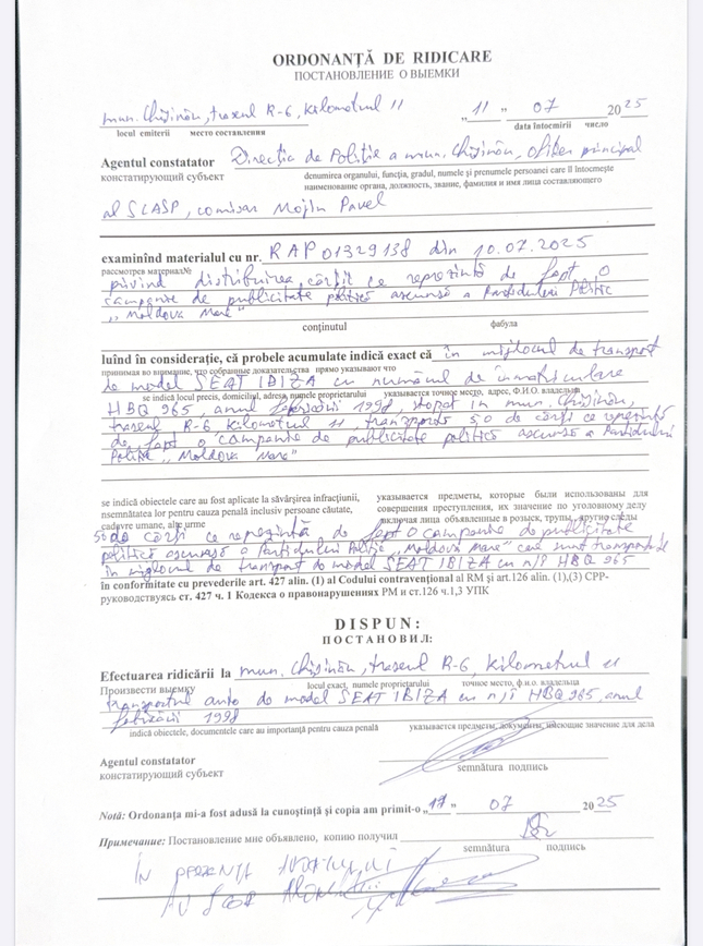 Potrivit unui comunicat al formațiunii, dovezile falsificării unei adresări scrise, pretins emisă de șeful Serviciului de Informații și Securitate (SIS) al Republicii Moldova, Alexandru Musteață, către șeful Inspectoratului General al Poliției, Viorel Cernăuțanu, document pe baza căruia la data de 7 iulie au fost inițiate acțiuni legale de confiscare a albumului monografic „Moldova Mare” semnat de Victoria Furtună și Iurie Răileanu, au fost prezentate de politiciană în direct pe rețelele de socializare la 17 iulie.