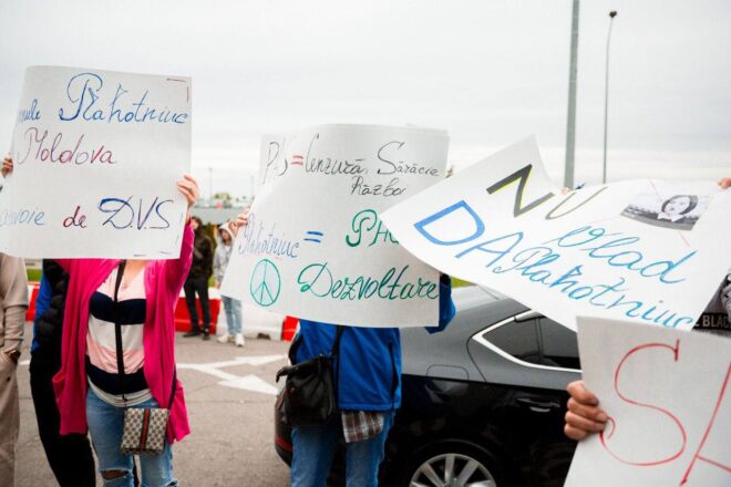 (FOTO) Susținătorii lui Vlad Plahotniuc, miting la Aeroportul Chișinău: “Dosar politic, justiție capturată”