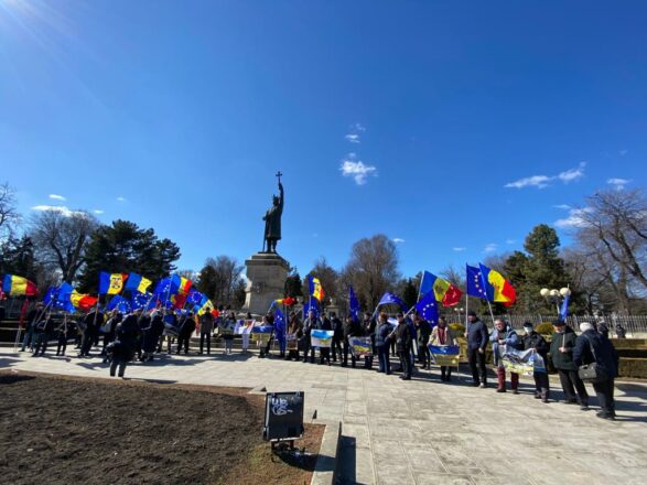 „Nu războiului”, „Moldova vrea pace”, „Solidaritate pentru Ucraina”, „Stop invaziei ruse”. Sunt câteva dintre sloganele unui miting care a avut loc sâmbătă, 12 martie, la Chișinău. Cu drapele ale Republicii Moldova și Uniunii Europene, dar și cu bannere pro-pace, zeci de oameni s-au adunat în fața Monumentului Ștefan cel Mare și Sfânt pentru a-și manifesta solidaritatea față de poporul ucrainean și a cere stoparea invaziei ruse.