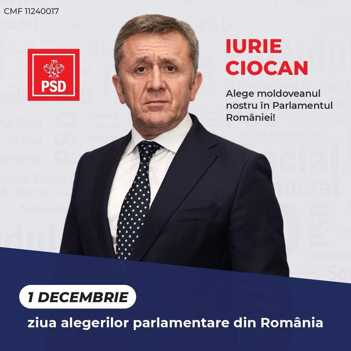 Vă chem așadar duminică, pe 1 decembrie, să votați pentru PSD și pentru mine, Iurie Ciocan, care voi fi moldoveanul vostru în Parlamentul României”, a declarat candidatul Iurie Ciocan.