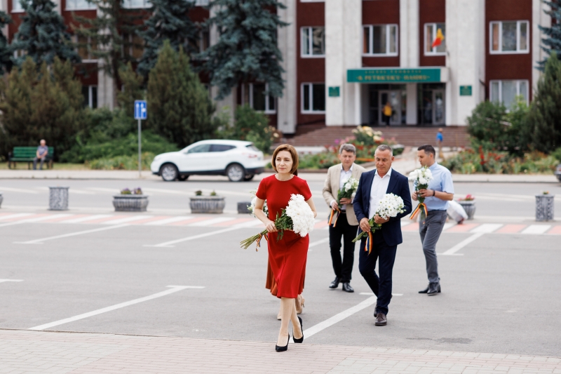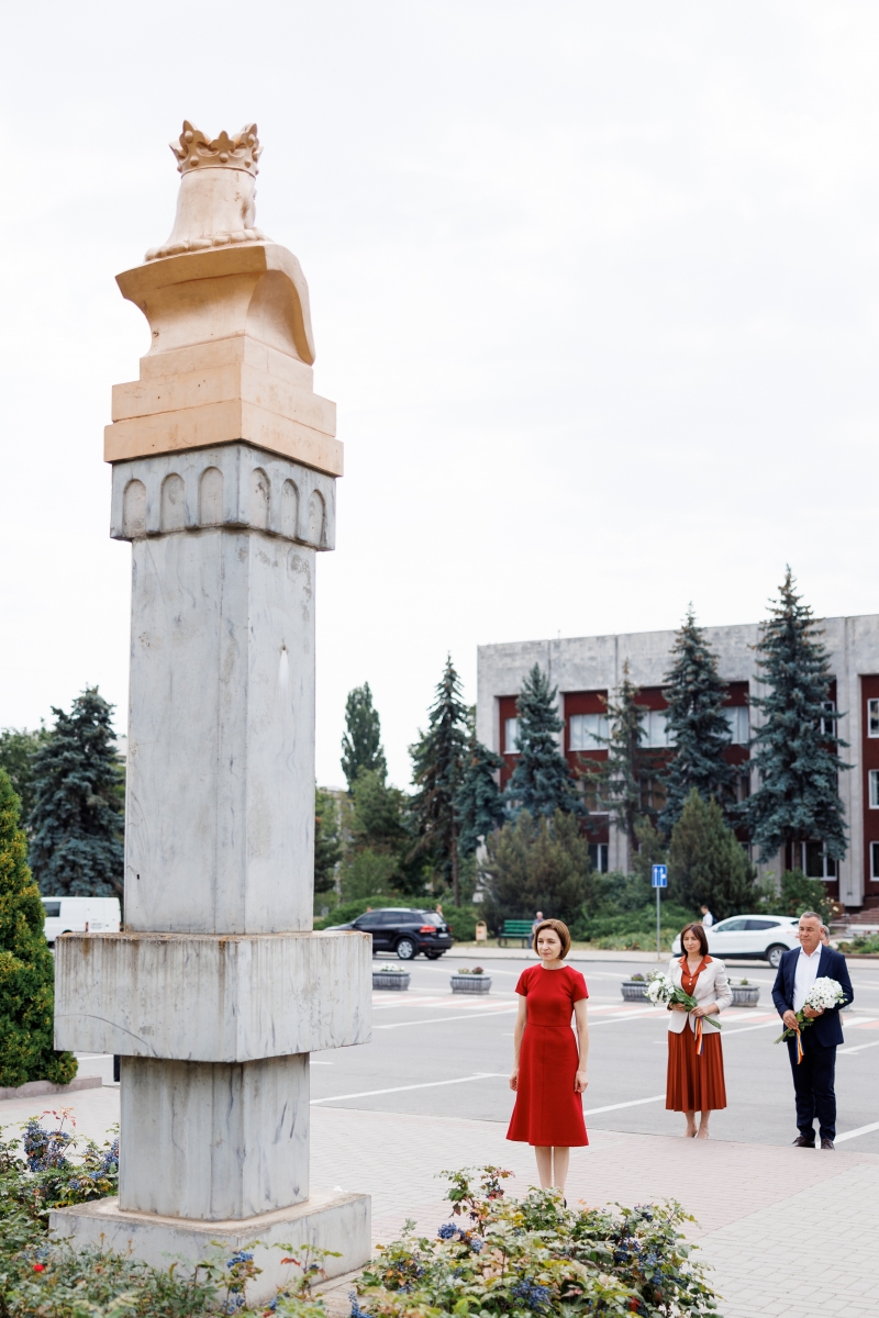 Președinta Maia Sandu a depus flori la bustul lui Ștefan cel Mare și Sfânt din orașul Drochia, unde se află într-o vizită de lucru. Azi, se împlinesc 520 de ani de la moartea domnitorului moldovean.