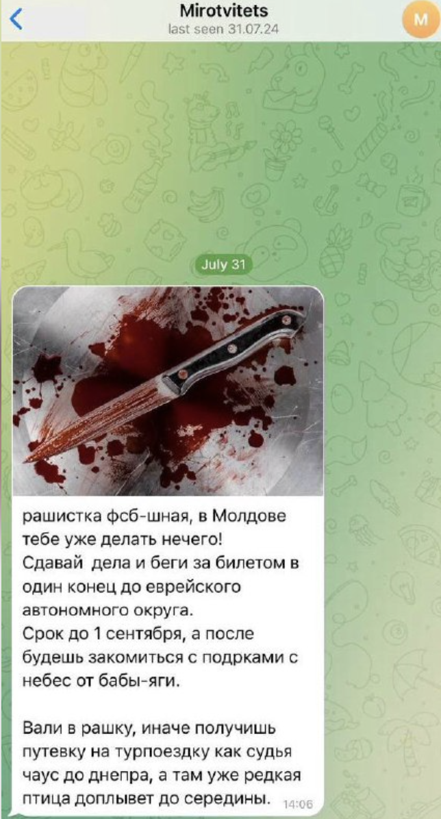 „Prieteni, din păcate, sunt nevoită să împărtășesc o veste neplăcută. Sunt intimidată și forțată să părăsesc țara. Pe numărul meu personal au început să sosească amenințări. Nu este prima dată, dar amenințările au devenit mai îndrăznețe și mai brutale. Ultima amenințare a fost însoțită de o fotografie cu sânge și o promisiune de violență fizică. Cu siguranță mă voi adresa la poliție și mă aștept să fie luate măsuri pentru investigarea și pedepsirea vinovaților”, a menționat Marina Tauber.