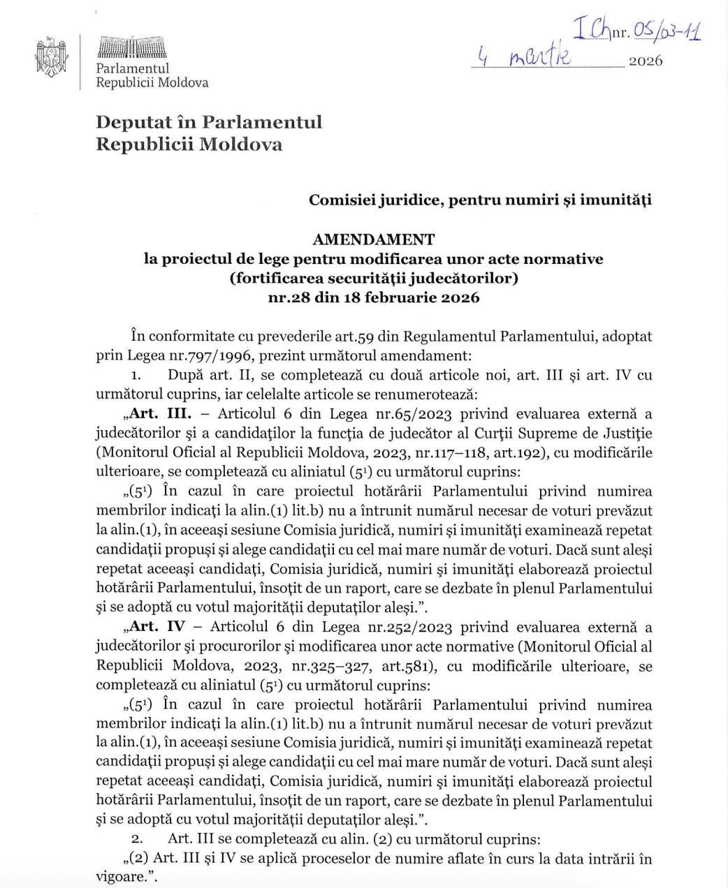 Prin prezentul amendament se propune instituirea unei măsuri subsidiare la numirea membrilor în comisiile de evaluare. Potrivit cadrului legal, membrii comisiilor de evaluare sunt numiți cu votul a 3/5 din deputații aleși. Legea, însă, nu prevede cazul când nu este întrunit numărul necesar de voturi. Un astfel de gol legislativ poate afecta grav procesul de evaluare externă, în special în contextul constrângerilor temporale, având în vedere că termenul-limită este 31 decembrie 2026”, se arată în amendament.