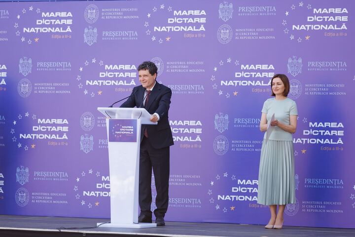 De Ziua Limbii Române, Președinta Republicii Moldova, Maia Sandu, l-a întâmpinat la Chișinău pe Președintele României, Nicușor Dan, pentru a participa împreună la evenimentele dedicate acestei sărbători. Cei doi șefi de stat au deschis cea de-a treia ediție a Marii Dictări Naționale, desfășurată în Piața Marii Adunări Naționale, la care au participat aproximativ 2000 de persoane.