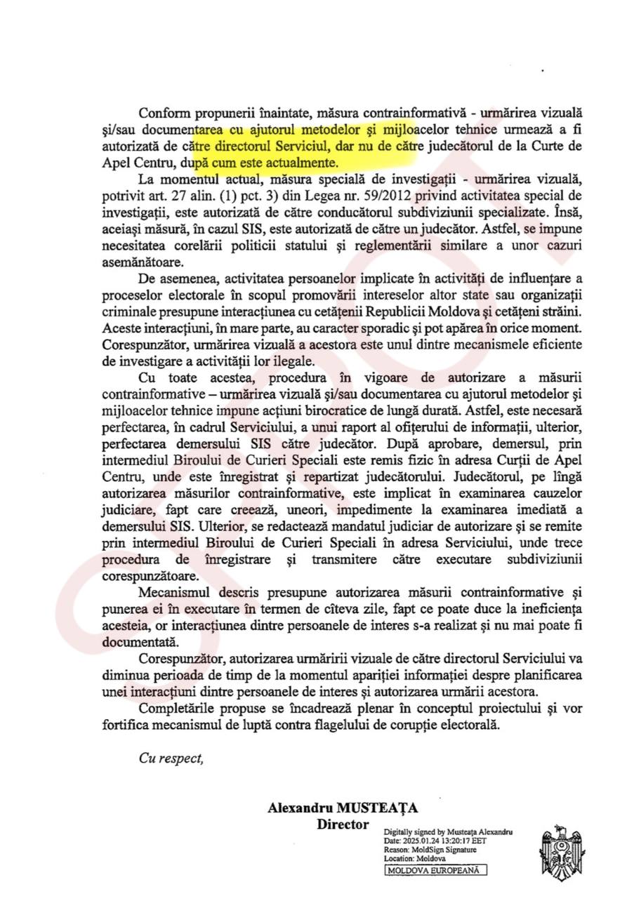 Lidera partidului Moldova Mare, Victoria Furtună, critică dur proiectul de lege care ar permite Serviciului de Informații și Securitate (SIS) să efectueze supravegheri fără mandat judecătoresc. Ea afirmă că inițiativa reprezintă „un nou pas al regimului Sandu și al PAS către dictatură și tiranie”.