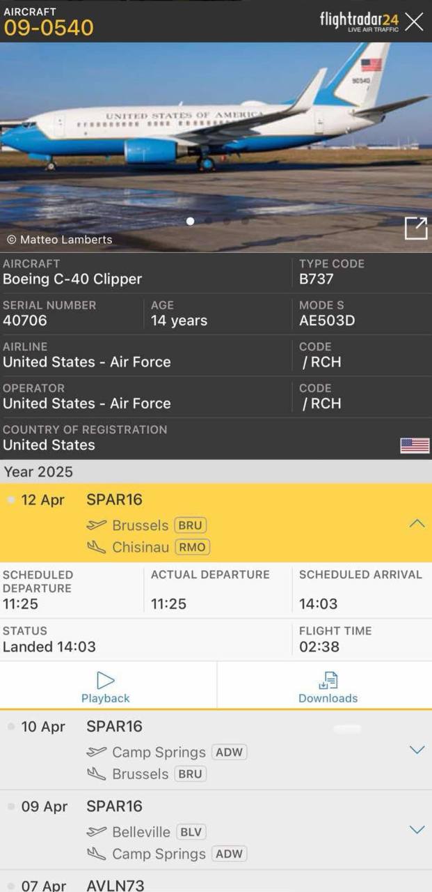 O delegație de rang înalt a Congresului american a efectuat o vizită discretă în Republica Moldova, aterizând vineri, 12 aprilie, pe aeroportul din Chișinău, la bordul unui avion militar-diplomatic al Forțelor Aeriene ale SUA – Boeing C-40 Clipper (cod SPAR16). Informația a fost semnalată pe canalul de Telegram SPPOT.