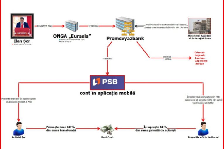 Astfel, anterior, reprezentanților partidelor afiliate lui Ilan Șor, le erau create conturi bancare în banca comercială ,,Promsvyazbank” din Federația Rusă (aflată sub sancțiuni internaționale pentru oferirea de sprijin armatei ruse în războiul din Ucraina), după care, pentru activitatea în folosul partidelor și pentru coruperea electorală în cadrul alegerilor, prin intermediul aplicației ,,PSB” le erau transferate pe conturile acestora sume de bani în ruble rusești, care ulterior erau convertite în valută.