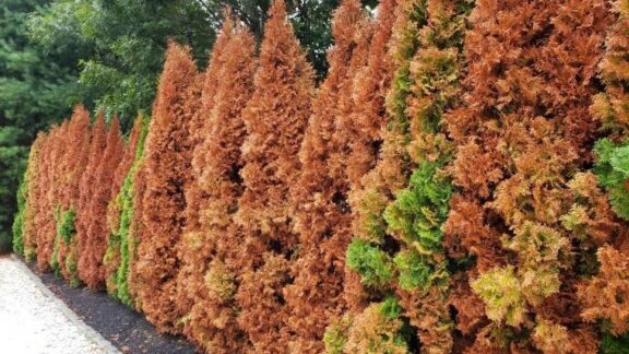 27 mai 2025 Arbuștii de tuia de pe strada Sadoveanu din sectorul Ciocana, „otrăviți” cu gaze toxice. Primăria cere anchetă