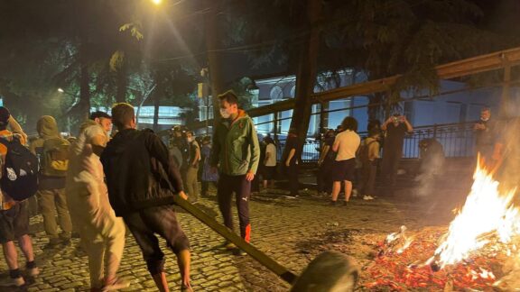 2 mai 2024 Noi violențe în Georgia, „legea rusă” a fost votată. Poliția a dat cu gaze lacrimogene în mulțimea care a luat cu asalt Parlamentul