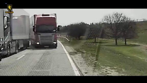 2 aprilie 2024 (VIDEO) La un pas de tragedie. Șoferul unui camion a fost sancționat, după ce era să tamponeze grav un automobil