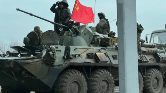 18 aprilie 2022 Kremlinul explică de ce folosesc rușii steagul sovietic în războiul din Ucraina. „Este un simbol”