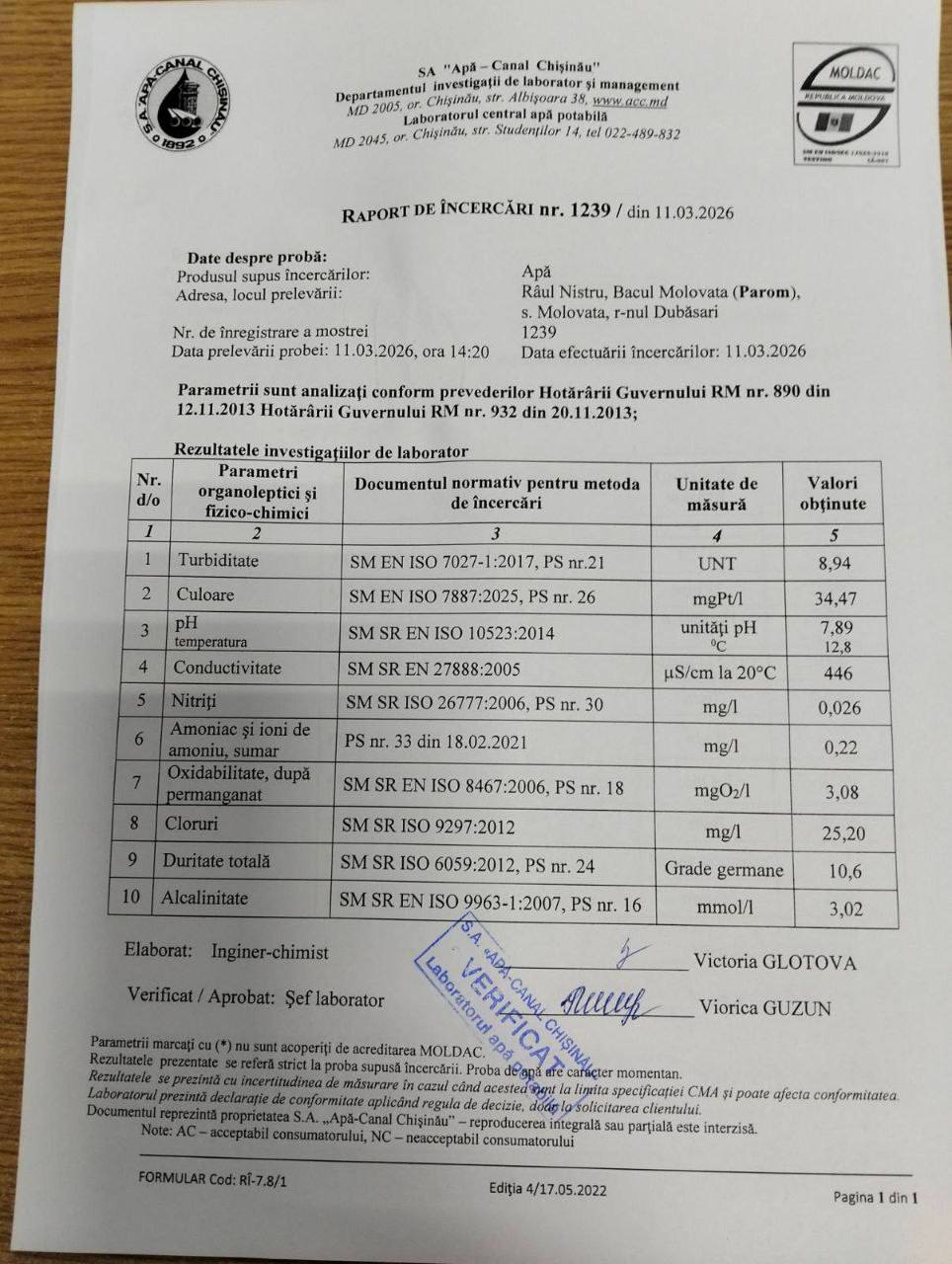 Potrivit edilului, probele au fost colectate din zona Hidrocentrala Dubăsari și din apropierea localității Molovata. Rezultatele ar indica faptul că apa nu prezintă contaminare în această zonă.