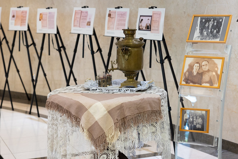Expoziția mai ilustrează și istoria familiei deputatei Valentina Ghețu. O serie de fotografii vechi, de familie, documente originale și obiecte din colecția deputatei vorbesc despre povestea tristă trăită de familia Simon din satul Zăbriceni, raionul Edineț.