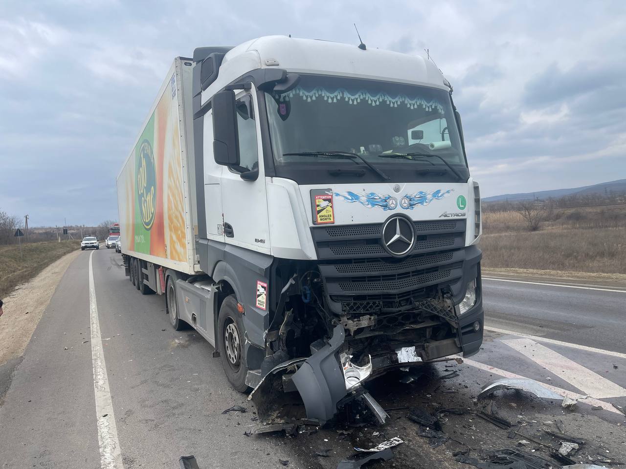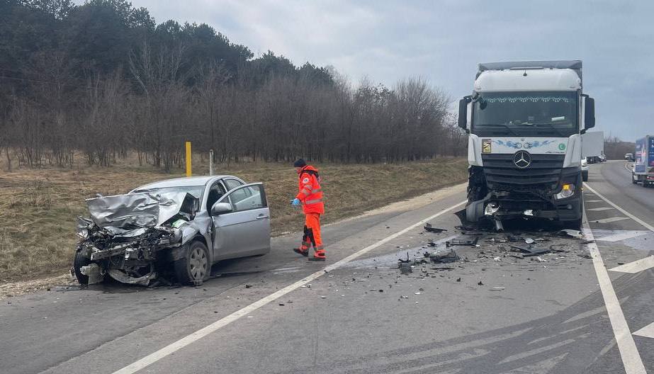 (FOTO) Accident cumplit pe traseul Chișinău – Ungheni: un bărbat de 68 de ani a murit, după ce a ieșit la o depășire și s-a tamponat cu un camion