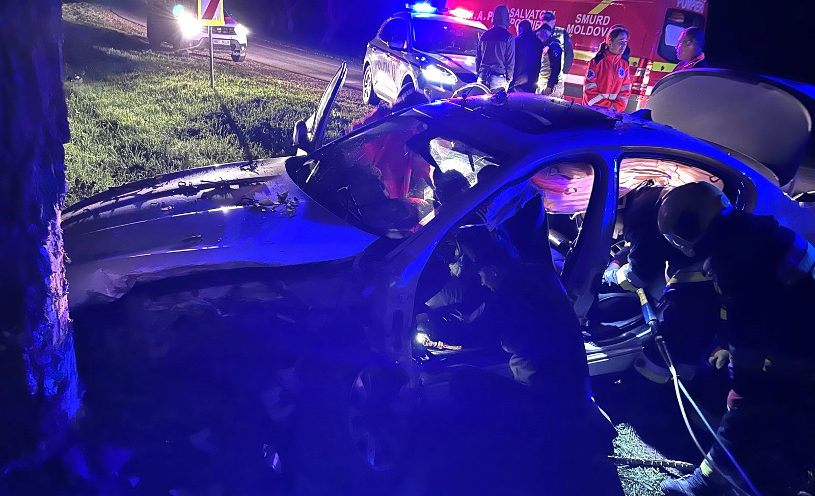 Potrivit informațiilor recepționate, un automobil de model BMW a derapat de pe traseu și s-a tamponat într-un copac, iar conducătorul auto a rămas blocat în interiorul vehiculului avariat.