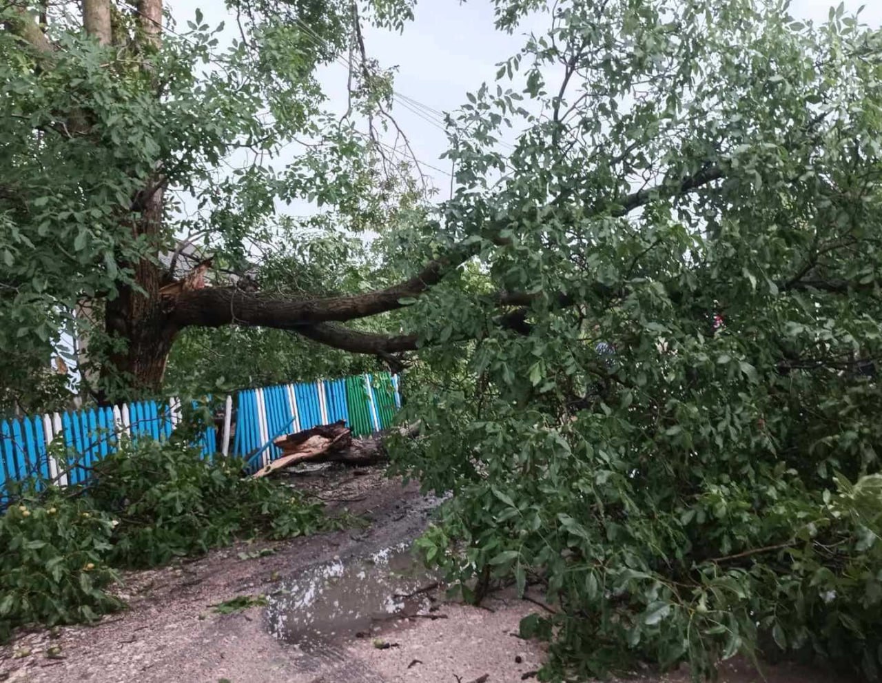 De asemenea, rafalele de vânt au smuls acoperișul unui magazin alimentar, iar în urma prăbușirii unui copac a fost deteriorat un garaj și un microbuz.