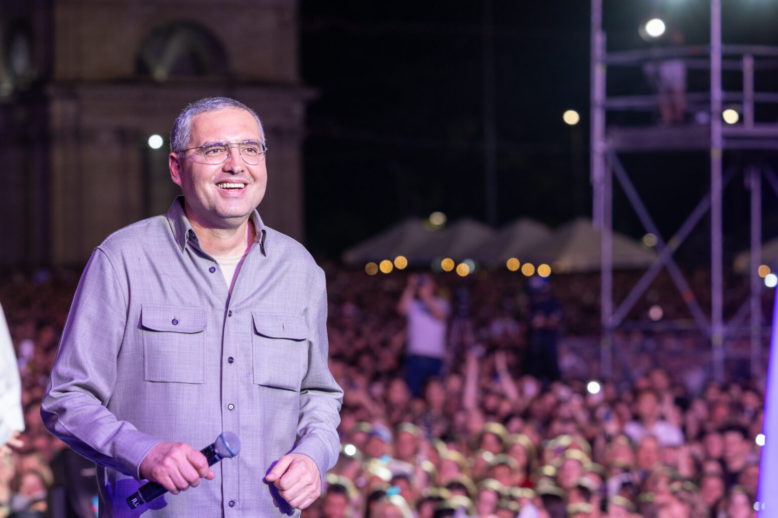 A urmat apariția lui Renato Usatîi, care s-a adresat tuturor celor prezenți în Piața Marii Adunări Naționale, dar și miilor de oameni care urmăreau evenimentul online: