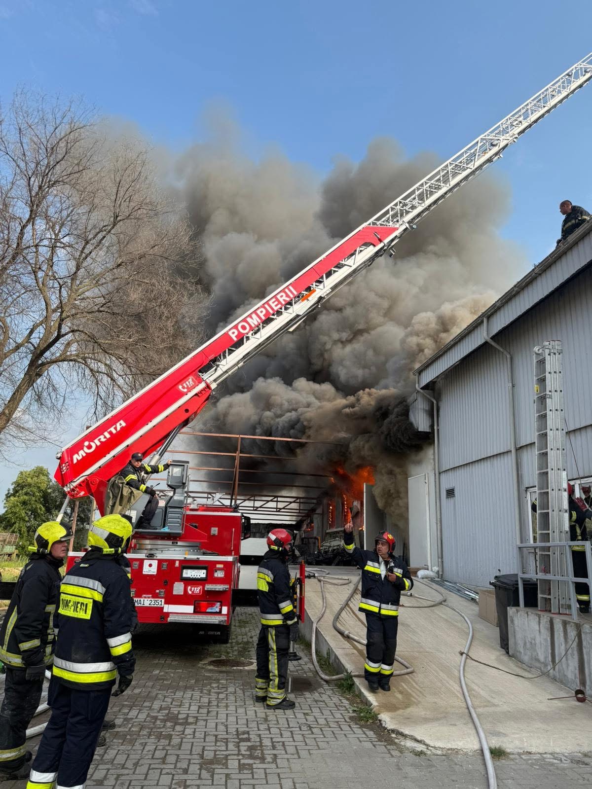 O parte din echipe lucrează la evacuarea bunurilor din incintă, în timp ce altele intervin pentru localizarea și lichidarea completă a incendiului. Din fericire, nu au fost raportate victime până în acest moment.