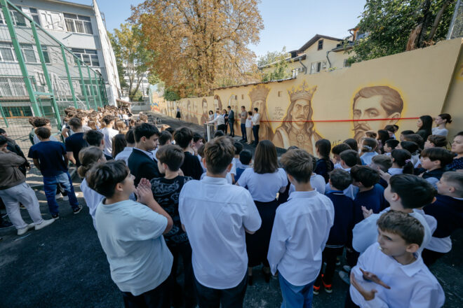 (FOTO) La Liceul „Gheorghe Asachi” din Chișinău a fost inaugurat „Zidul Istoriei” – un proiect cultural-educațional dedicat personalităților marcante ale spațiului românesc
