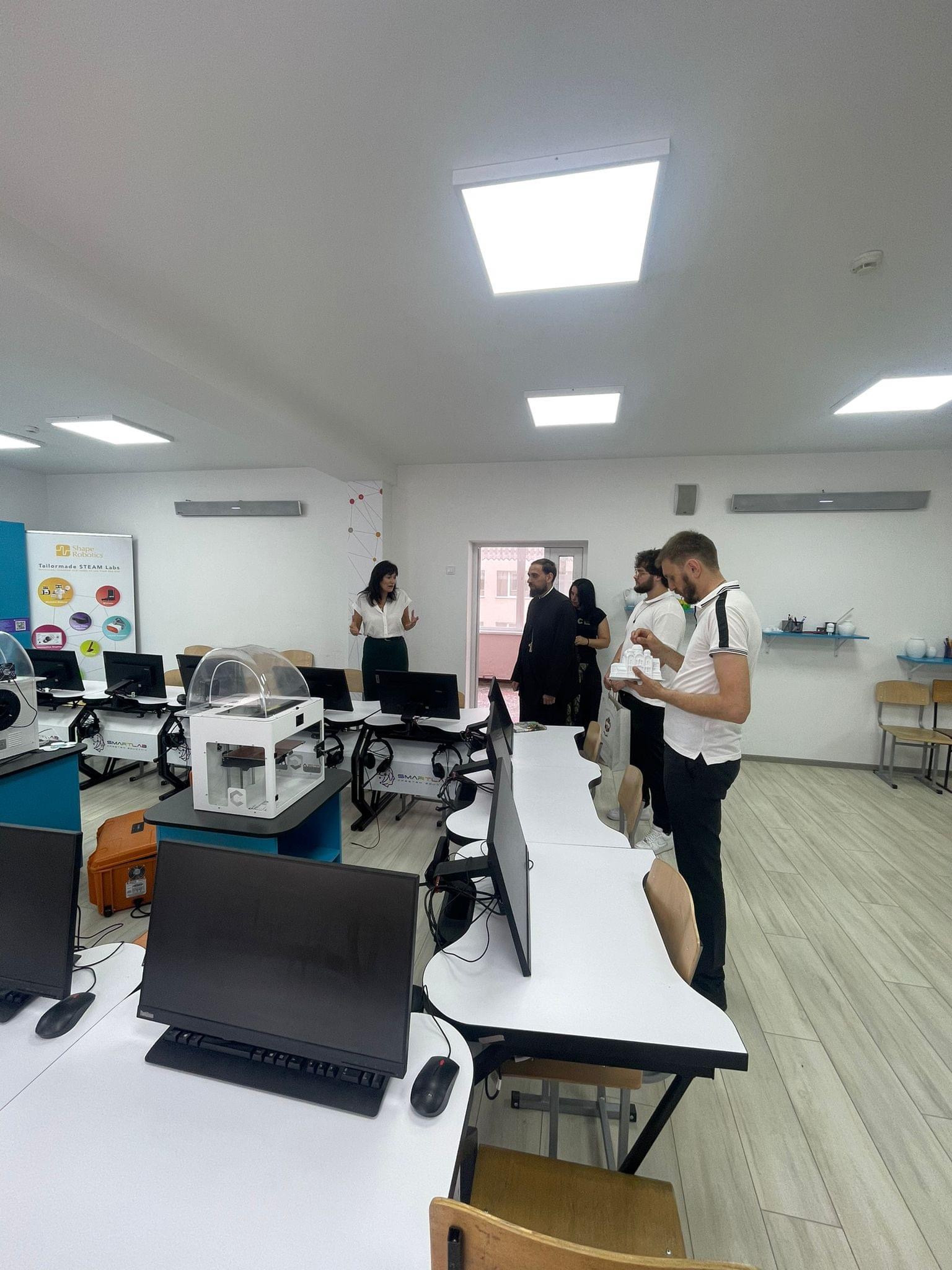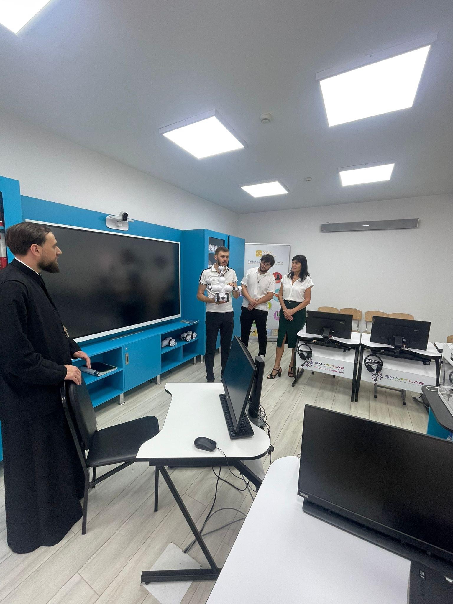 Părintele consilier Vasile Manica, coordonator al cabinetului „SmartLab” – primul proiect de acest gen implementat în Republica Moldova, a prezentat activitățile pedagogice desfășurate. Părintele predă ore de robotică și ore de religie la un nivel avansat al tehnologiei, impresionând delegația cu angajamentul său în educația modernă a elevilor.