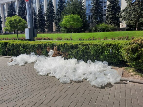 (FOTO) Mormane de gunoi după marșul „victoriei” organizat de socialiști