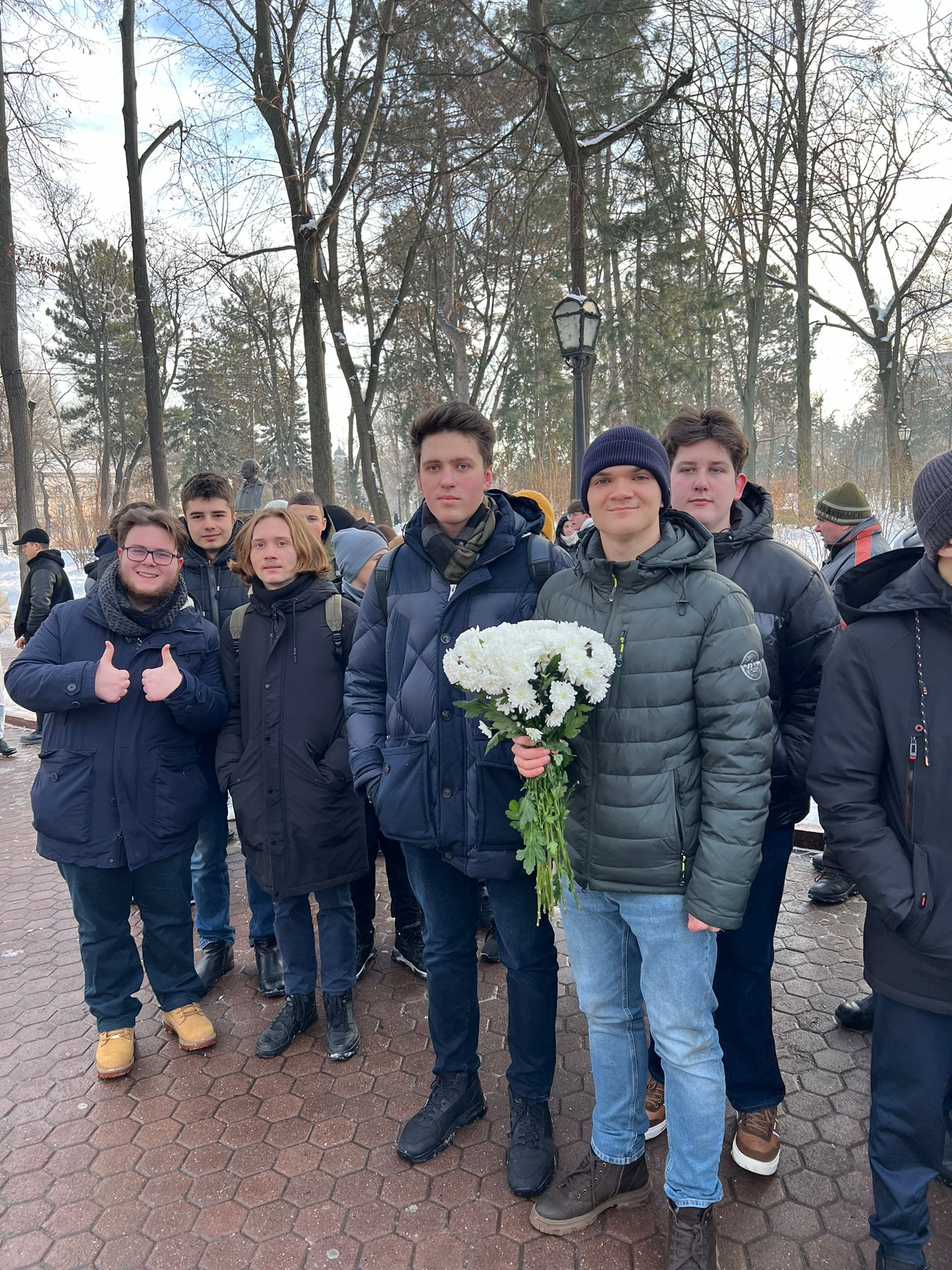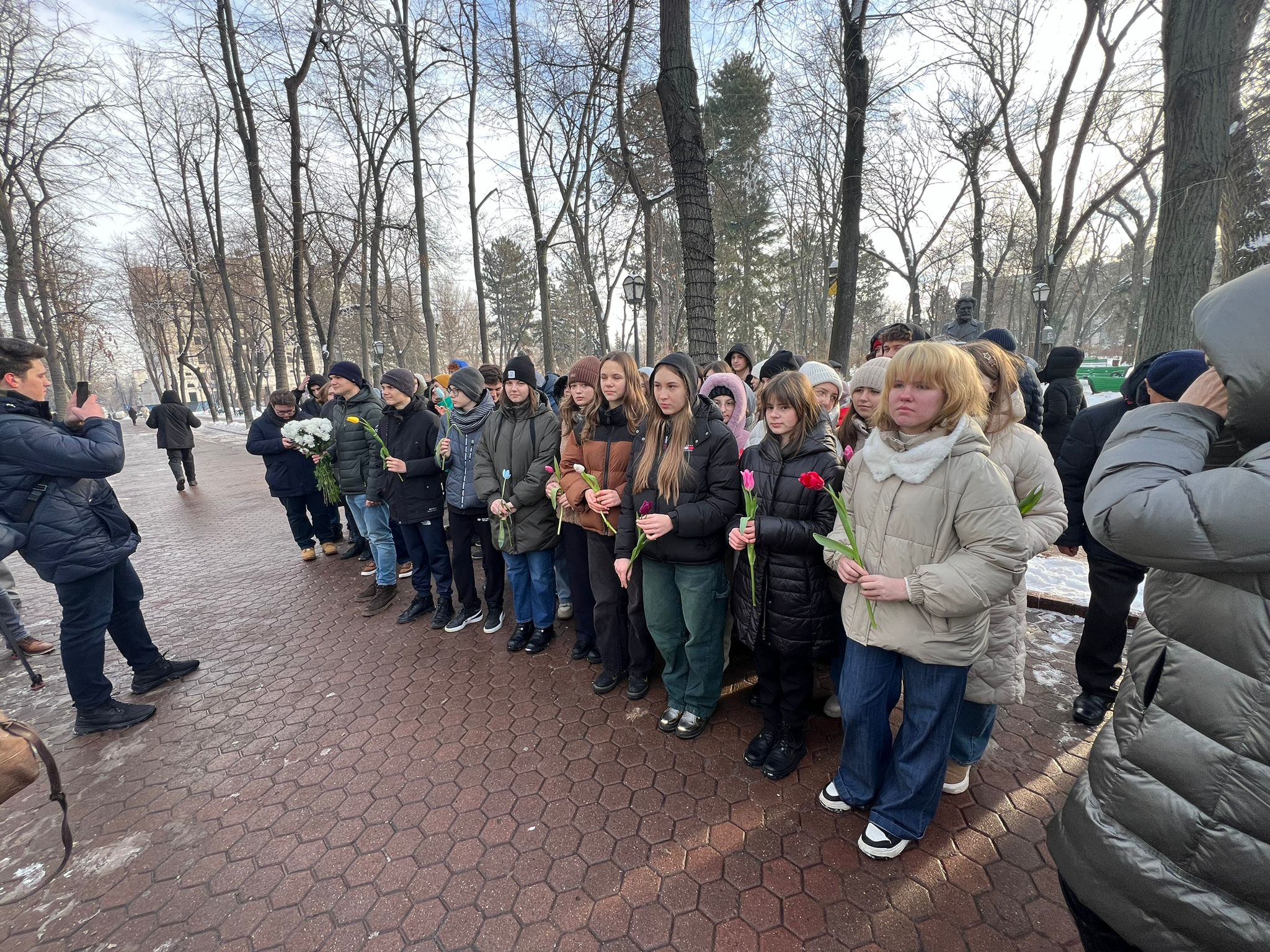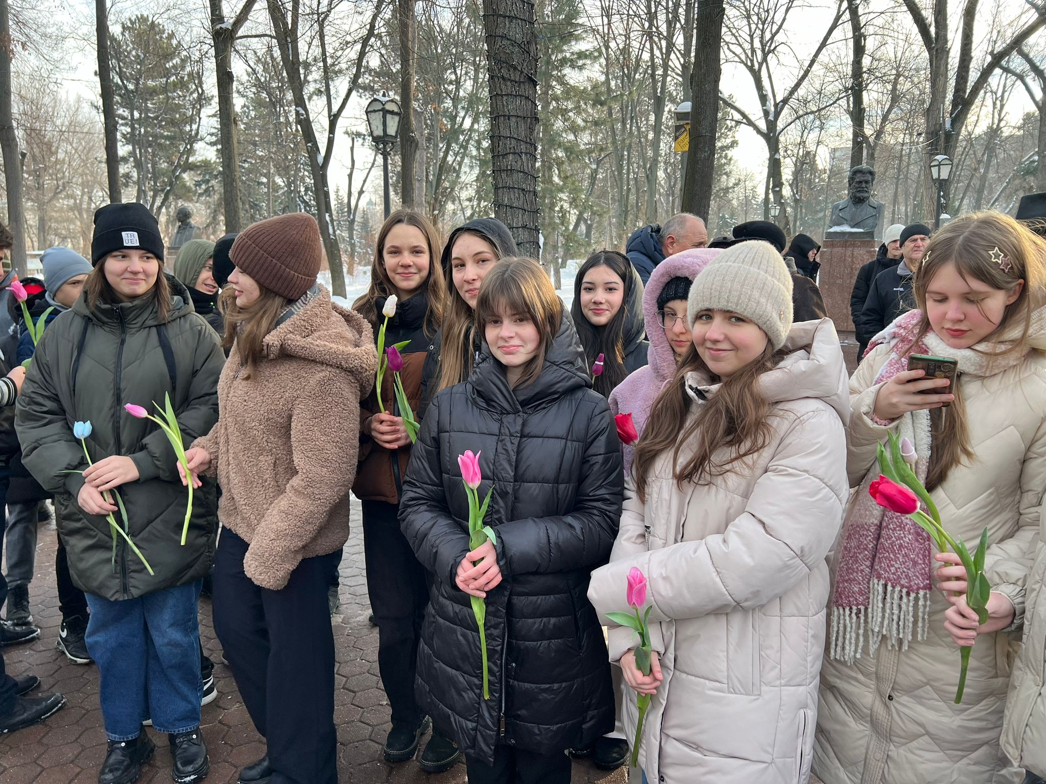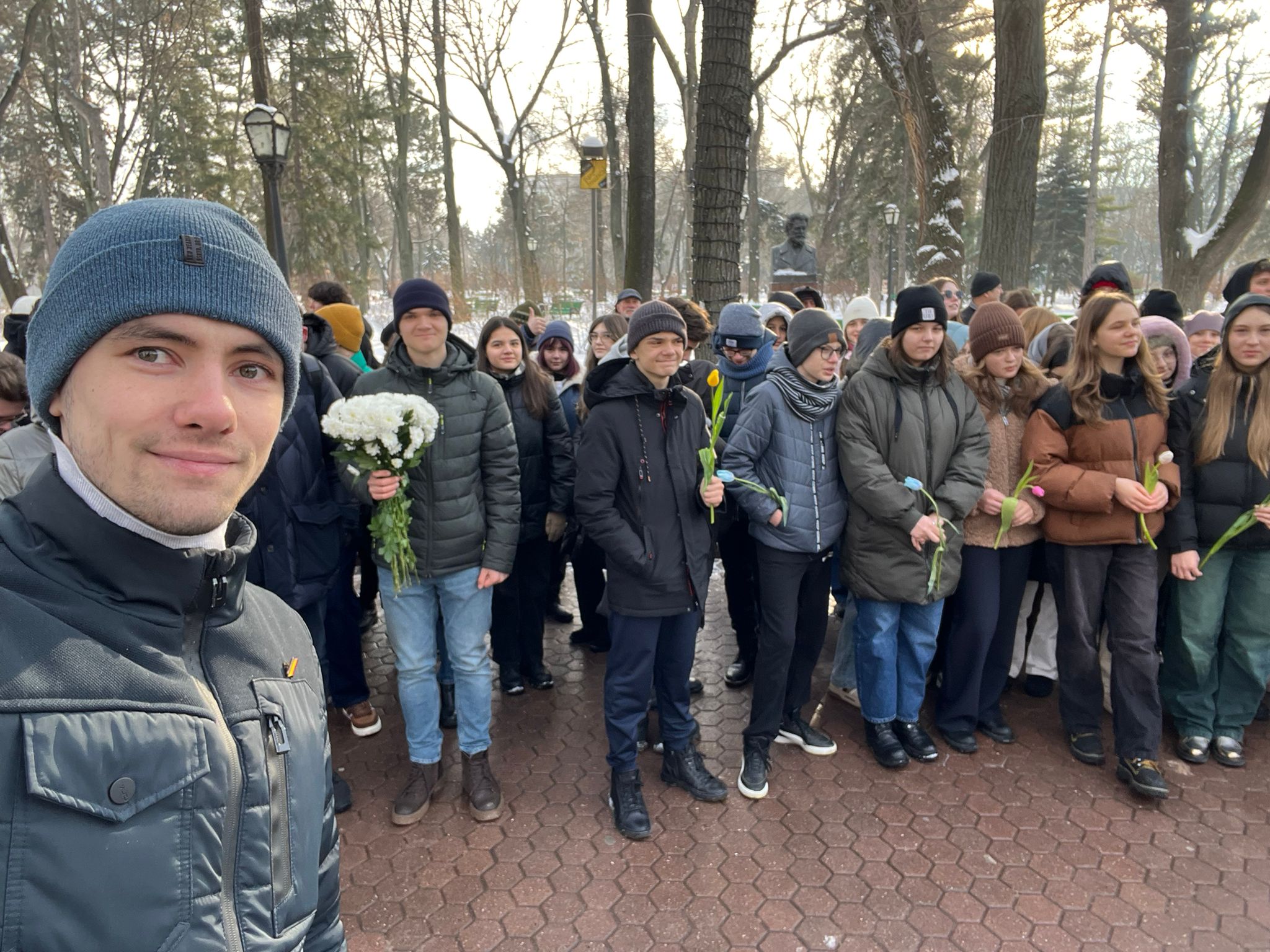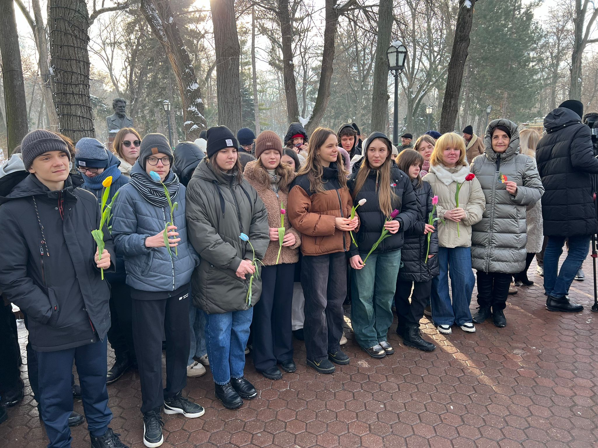(FOTO) Omagiu de Ziua Culturii! Mai mulți elevi și profesori de la Liceul „Gheorghe Asachi” au depus flori la bustul lui Mihai Eminescu