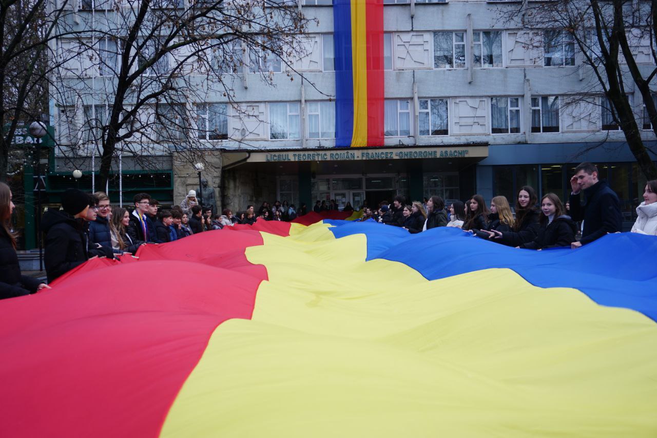 Cu un drapel imens, elevii și profesorii Liceului „Gheorghe Asachi” din capitală au marcat, într-un mod inedit, Ziua Națională a României. Aceștia au scandat lozinci patriotice și au dansat o „Horă a Unirii” ținând în mâini tricolorul. Mai mult, pe clădirea instituției de învățământ a fost arborat un drapel imens, care a atras admirația trecătorilor.
