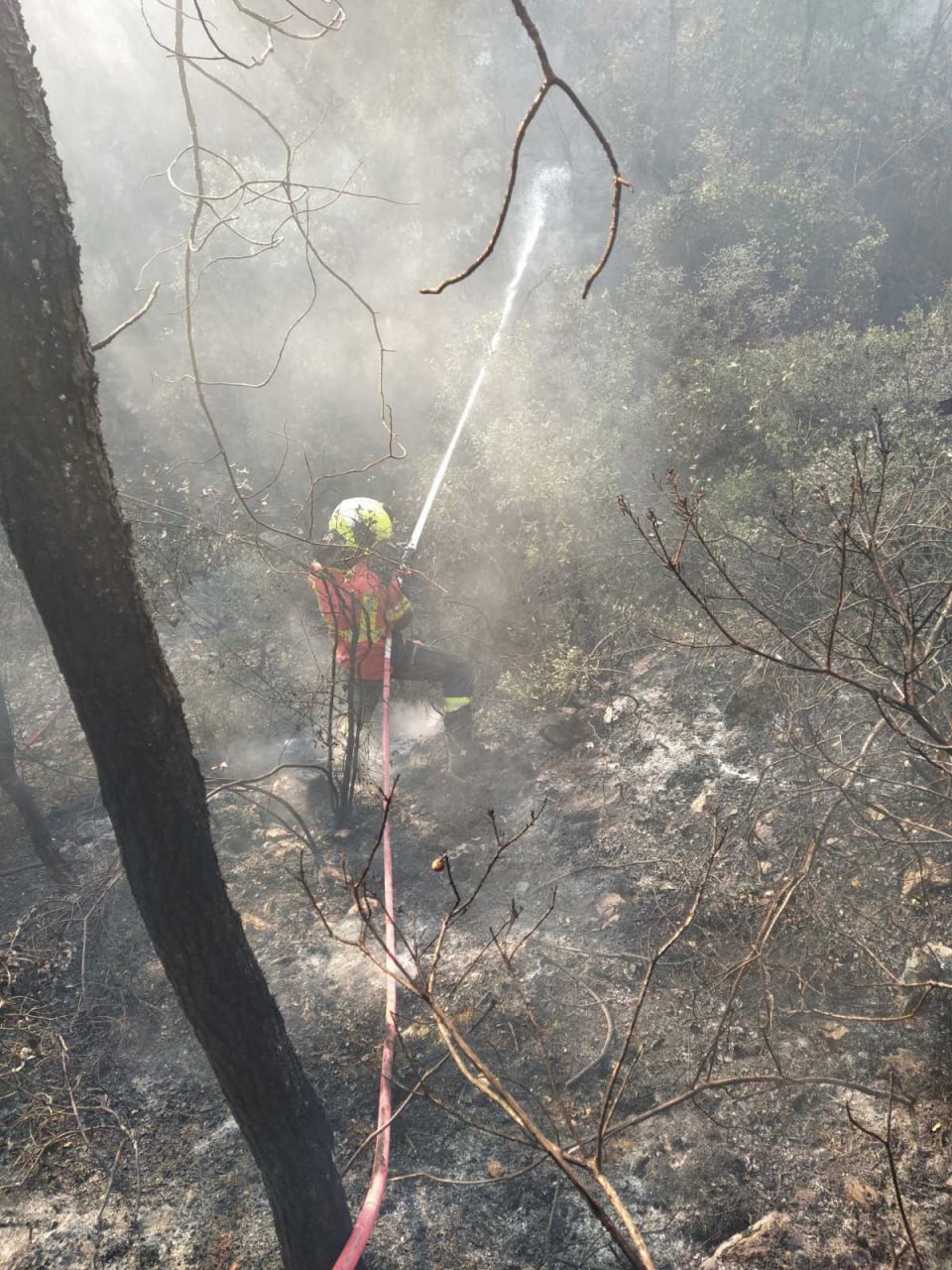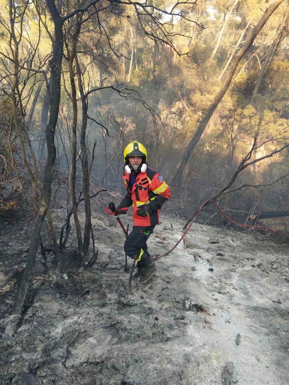 Echipa pompierilor de combatere terestră a incendiilor forestiere din cadrul IGSU al MAI detașată în Republica Elenă a intervenit în prima misiune la lichidarea unui incendiu de pădure în localitatea Epidaurus, Republica Elenă, ieri, 17 iulie 2024.