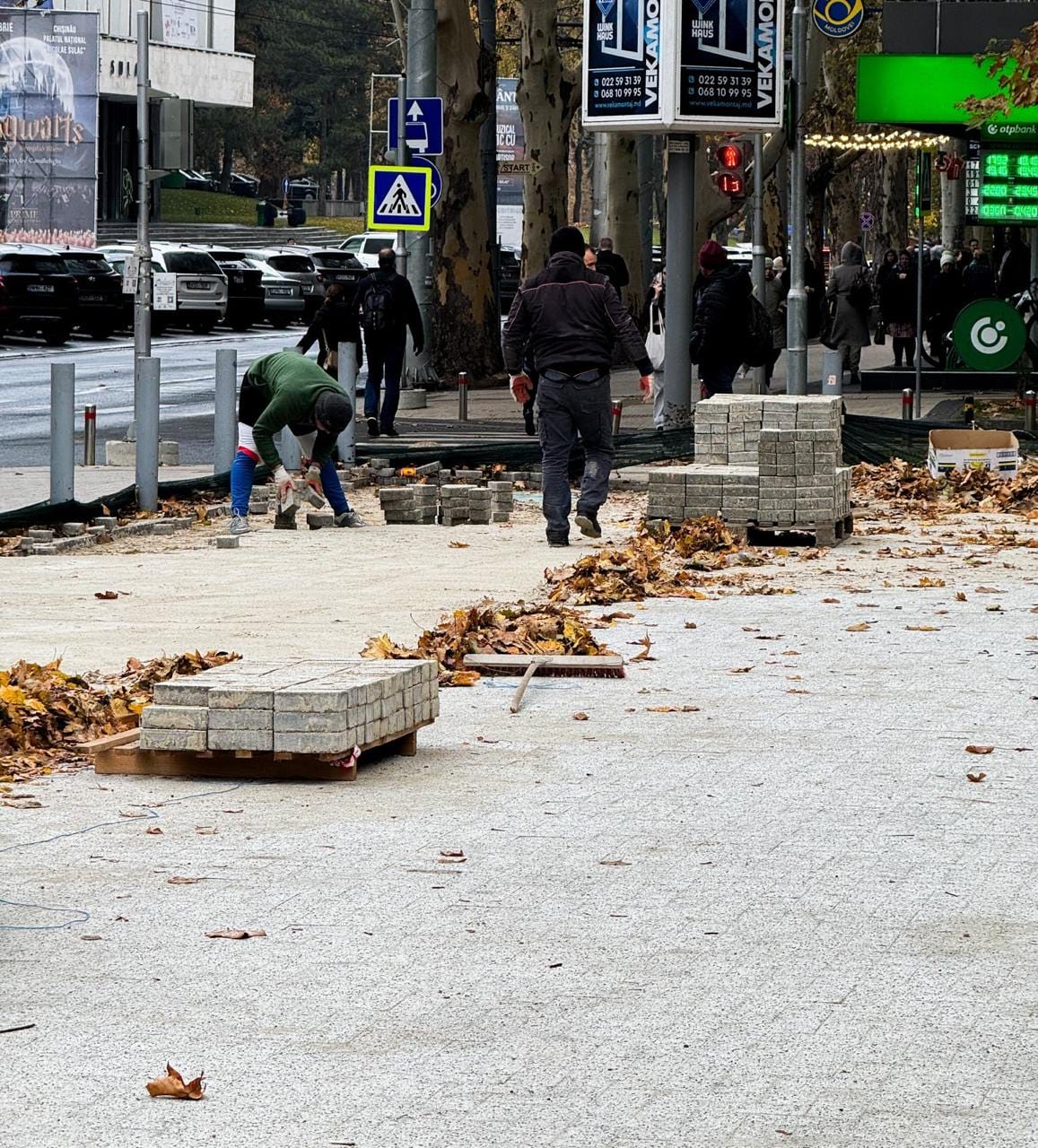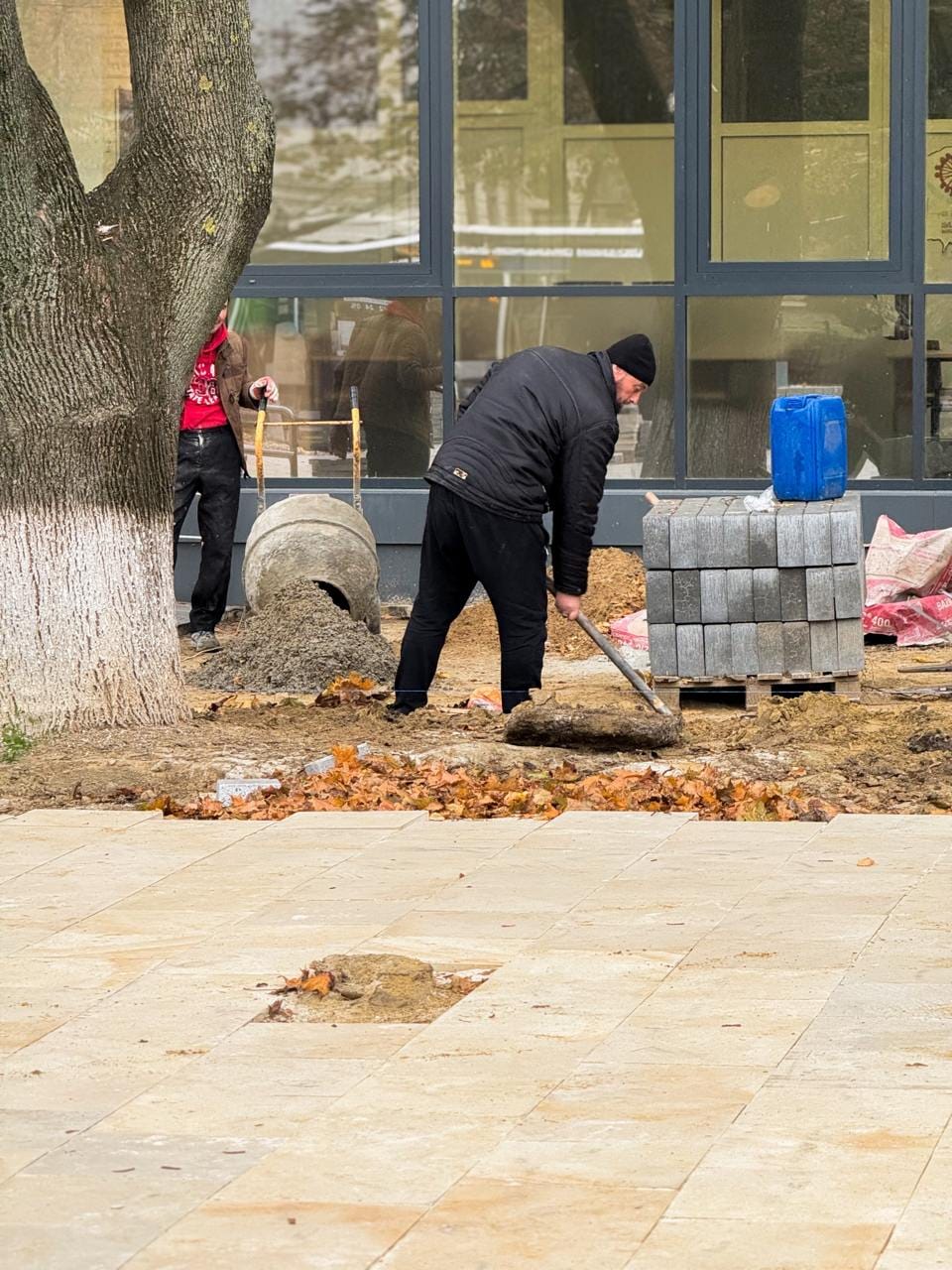 (FOTO) Scuarul Liceului „Gheorghe Asachi” va căpăta o nouă viață: pavajul este înlocuit și urmează a fi amenajată o zonă verde