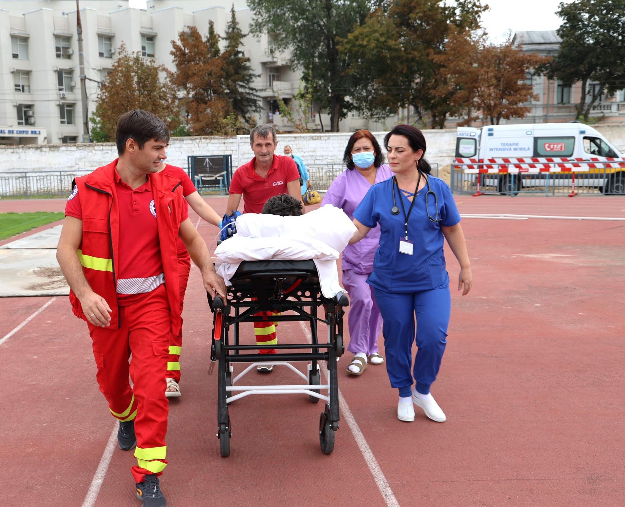 Elicopterul a aterizat la ora 10:18 pe stadionul Dinamo din municipiul Chișinău, de unde medicii și paramedici SMURD au preluat pacientul.