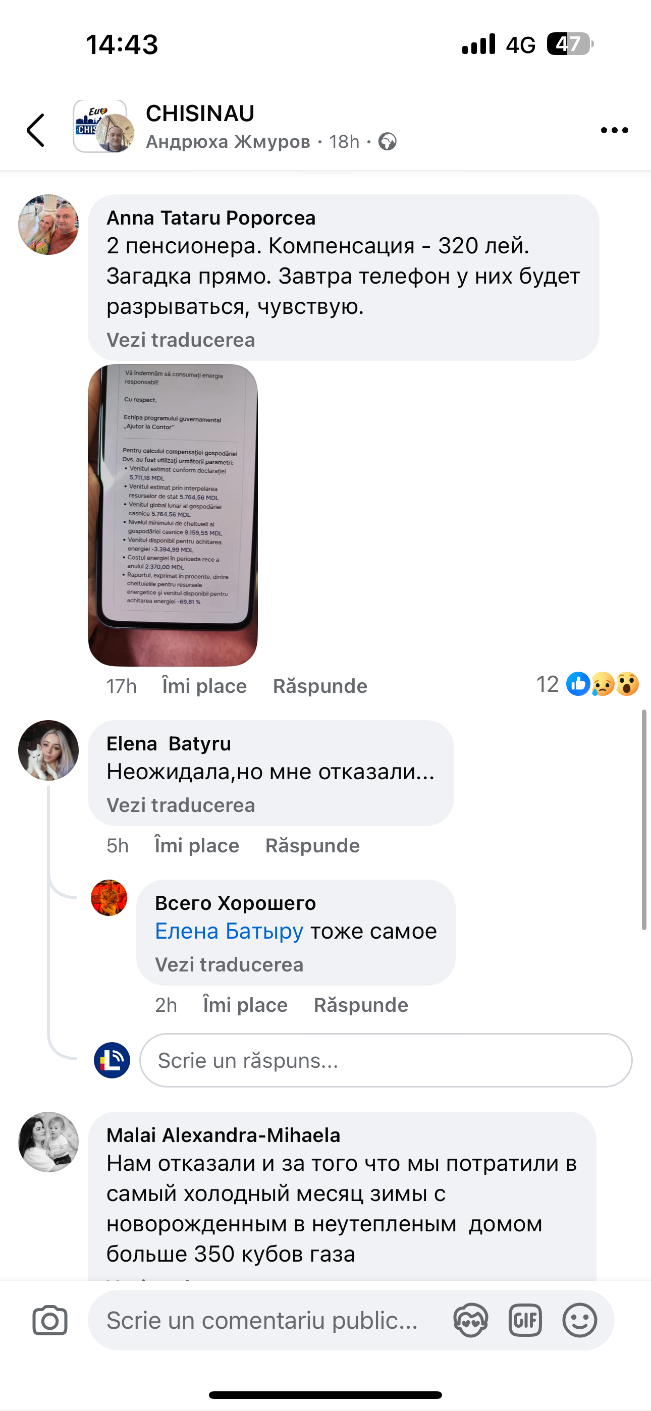 (FOTO) Val de nemulțumiri în mediul online după anunțarea compensațiilor: numeroase familii, declarate non-vulnerabile. Alexei Buzu: “E normal să fie nemulțumiri”
