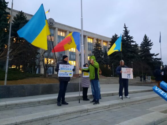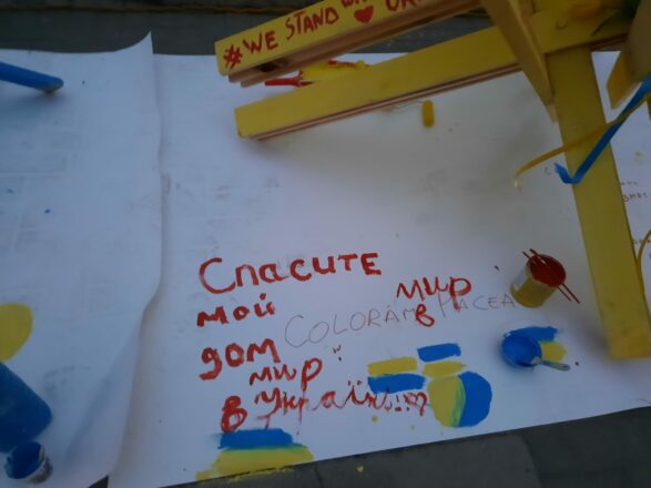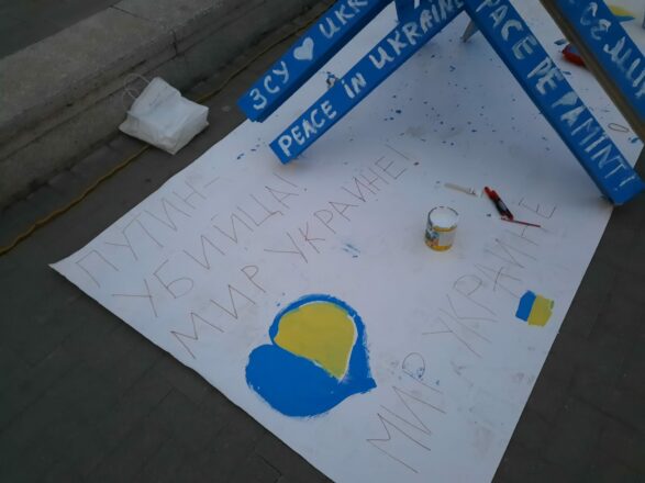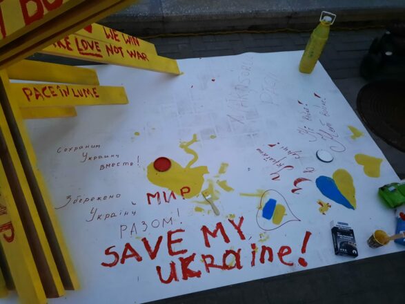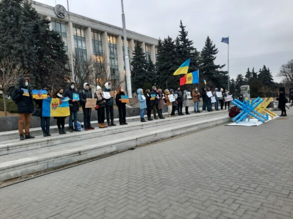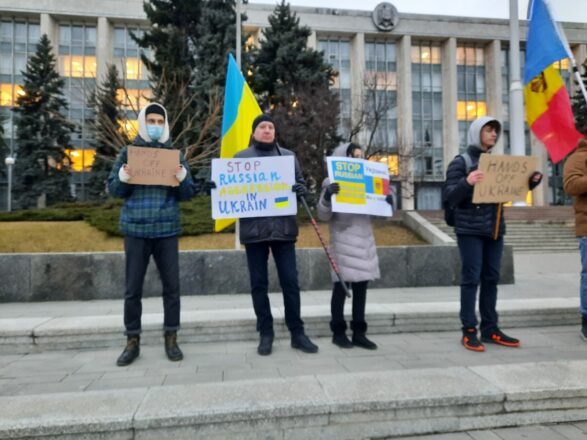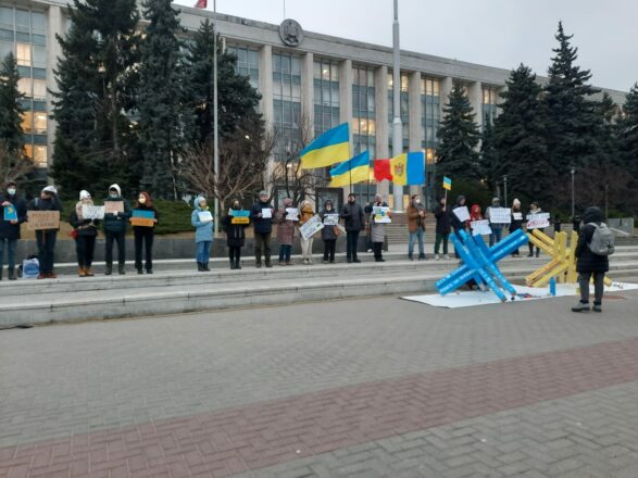 Au afișat bannere cu mesaje în susținerea Ucrainei, au intrerpretat piese și au lansat o sculptură dedicată statului vecin. O astfel de acțiune a avut loc în această seară în Piața Marii Adunări Naționale.