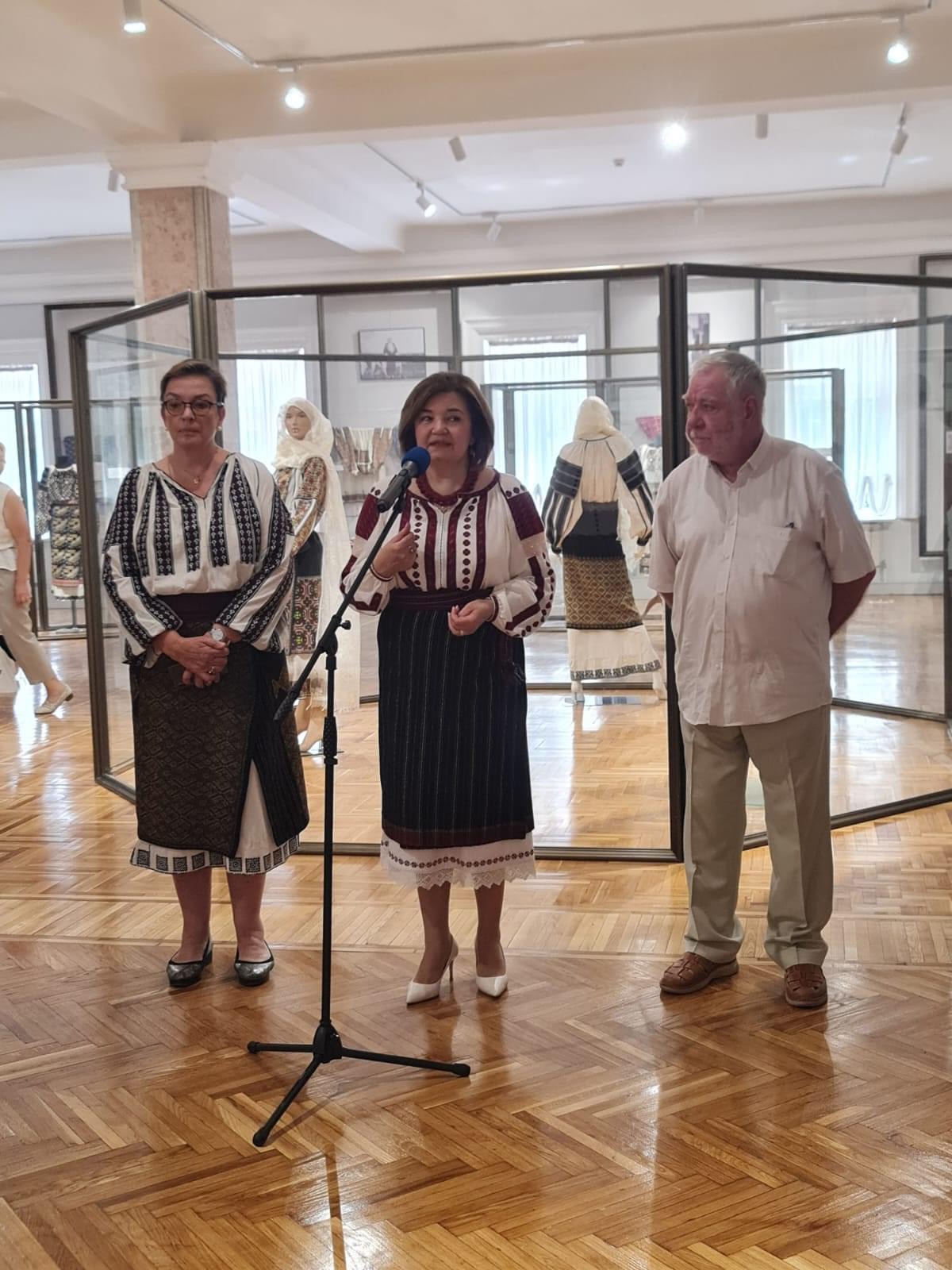 · Doamna Monica Babuc, directorul Institutului Cultural Român „Mihai Eminescu” la Chișinău, care a afirmat faptul că cuvântul cheie care caracterizează această expoziție este „bogăție”, reunind piese inedite de costum popular care nu sunt prea des întâlnite în spațiul Republicii Moldova . Directorul ICR “Mihai Eminescu“ la Chișinău a subliniat de asemenea necesitatea cunoașterii varietății pieselor vestimentare din costumul tradițional românesc care diferă de la o regiune la alta.