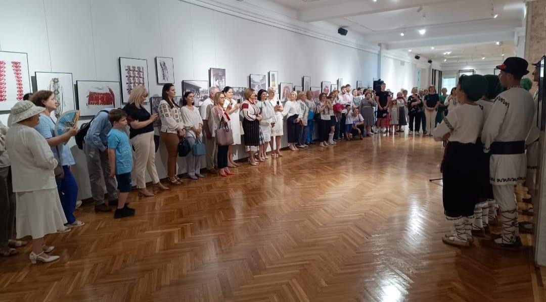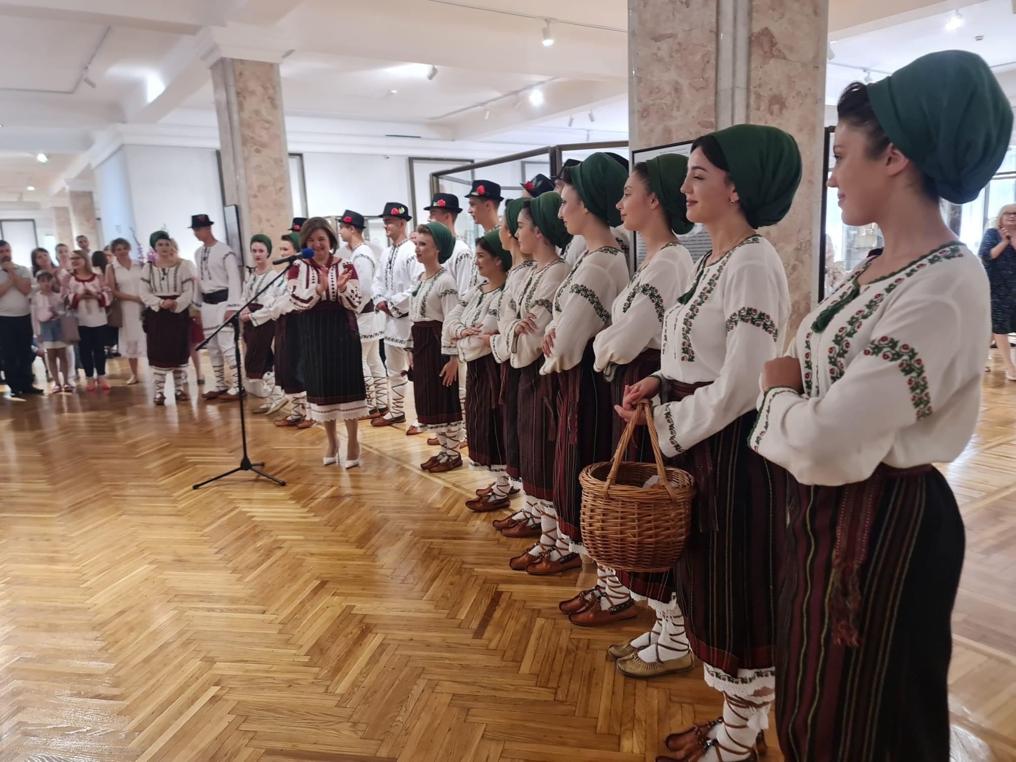 Surpriza vernisajului au fost membrii Ansambului folcloric “Romanița”, de la Colegiul Național de Medicină din Chișinău care au avut un scurt moment muzical în care a fost evocat portul nostru popular.