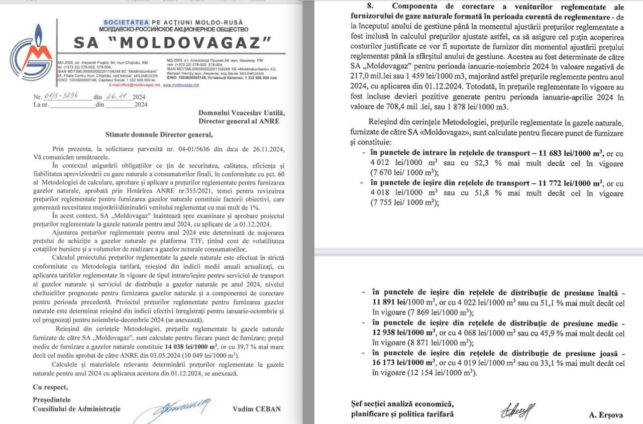 Moldovagaz solicită majorarea tarifului la gaze naturale cu 30%, ceea ce ar însemna o creștere cu patru lei pentru un metru cub. Potrivit ANRE, „solicitarea vine în condițiile unei creșteri considerabile a prețurilor pe piața internațională”.