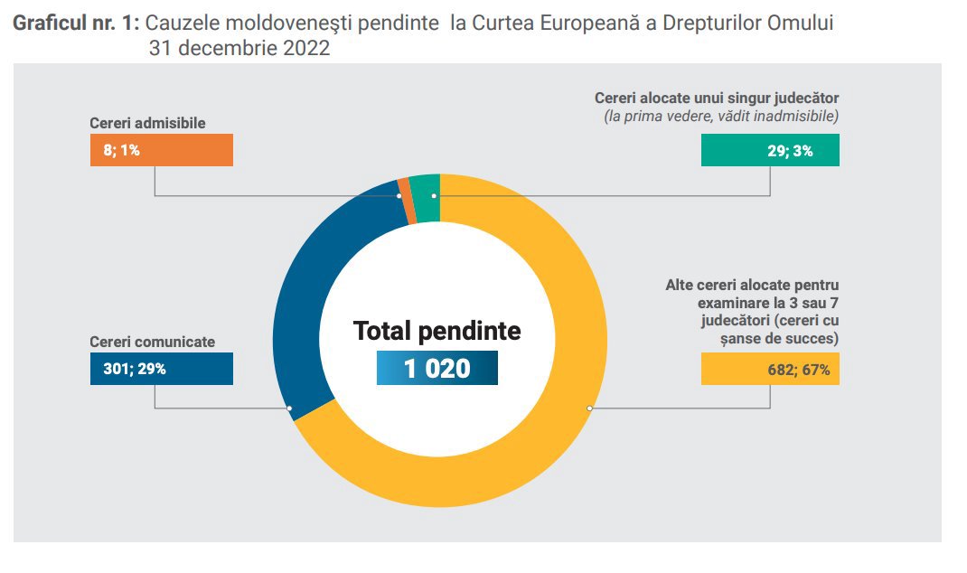 La 31 decembrie 2022, 1.020 de cereri moldovenești încă așteptau să fie examinate. Circa 97% dintre acestea au șanse mari de succes. Acest număr este aproape egal cu numărul total de cereri în baza cărora Moldova a fost condamnată în cei 25 de ani de când Moldova poate fi acționată la CtEDO.