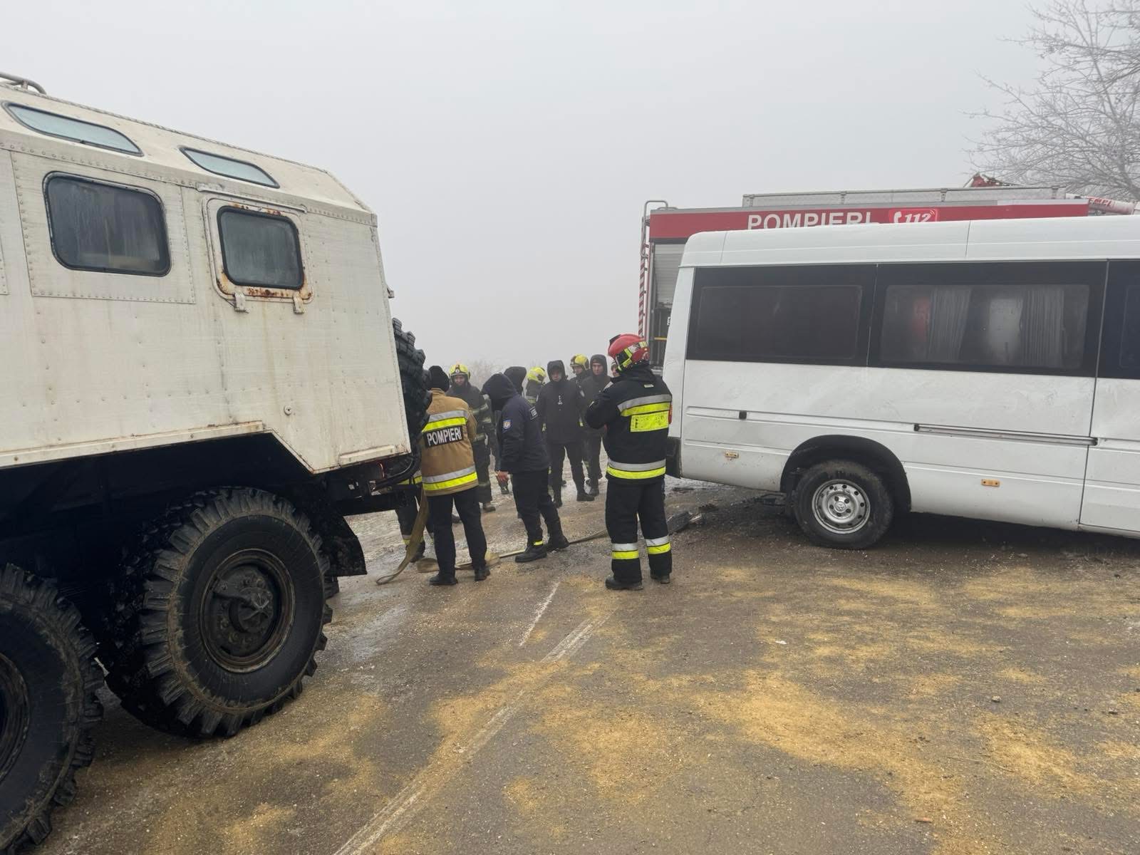 Pe traseu, o autospecială IGSU a derapat și a ajuns pe acostament, iar un microbuz cu 23 de pasageri a ieșit de pe carosabil și s-a lovit de aceasta.
