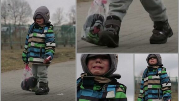 9 martie 2022 (VIDEO) Imagini sfâșietoare! Un băieţel din Ucraina plânge şi trage după el o jucărie de pluş, în timp ce trece singur graniţa spre Polonia